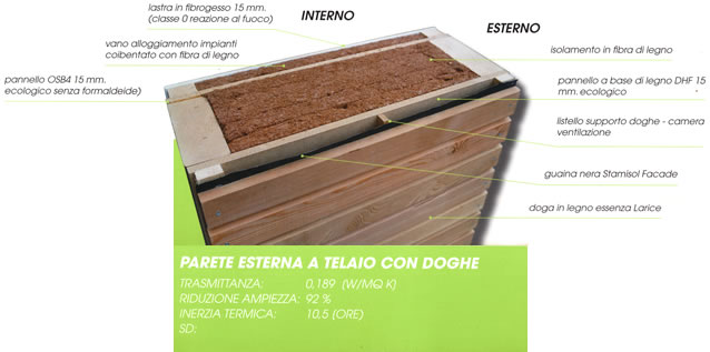 E' il sistema costruttivo più diffuso al mondo; le pareti (anche i solai vengono concepiti con questa tecnica costruttiva) sono costituite da intelaiature di legno di ridotte sezioni (6x16, 8x14) posti verticalmente a interasse costante sulle quali da un lato o su entrambi i lati vengono collegati, mediante chiodi o viti dei pannelli strutturali quali OSB, fermacell o similari. Gli elementi di parete, solaio e copertura possono essere prodotti in stabilimento e poi montati in cantiere a differenti livelli di prefabbricazione. L'intercapedine che si crea viene poi intasata con materiale isolante tipo fibra di legno, fibre minerali o cellulosa anche insufflata; nell'intercapedine possono poi trovare alloggio le integrazioni impiantistiche, che, però, vanno previste già in fase progettuale. La parete viene poi completata con un cappotto esterno (in fibra di legno, sughero, lane minerali o polistirene a seconda delle scelte), mentre all'interno può essere valutata l'opportunità di adottare una ulteriore contro parete.